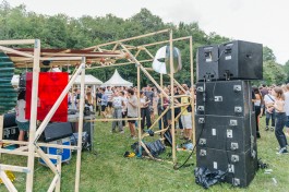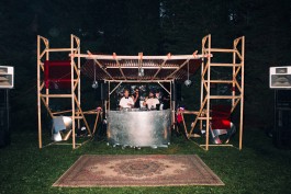 All pieces are easily dismantled in order to transport and store them. The whole construction is made out of 40x40mm pine wood and they were designed to be attached with metric screws and L shaped plastic sheets molded from grinded PET plastics, made and designed by TÓTH Ádám from MALOM Studio.